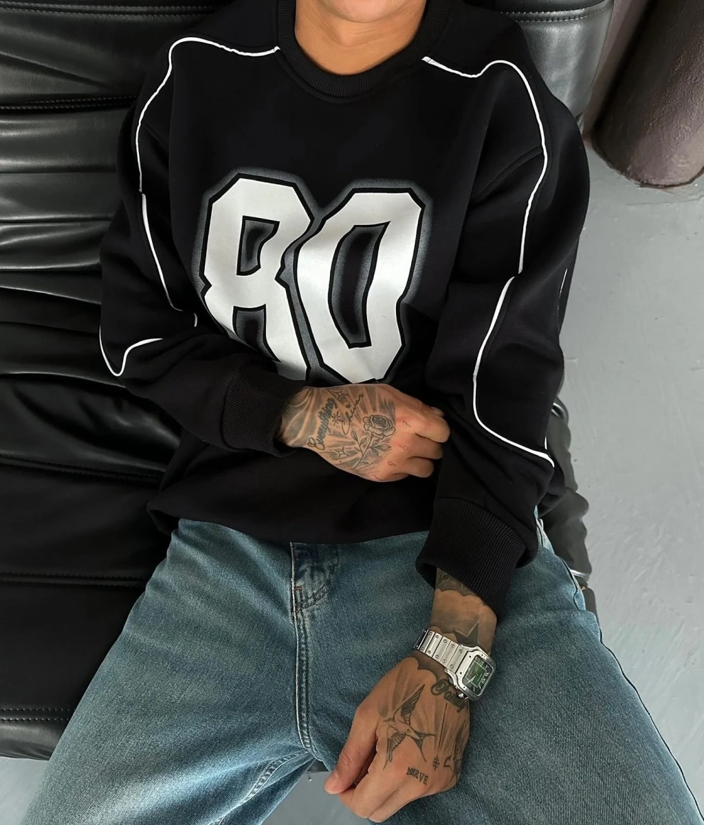 80 Şardonlu Unisex Sweatshirt-Siyah