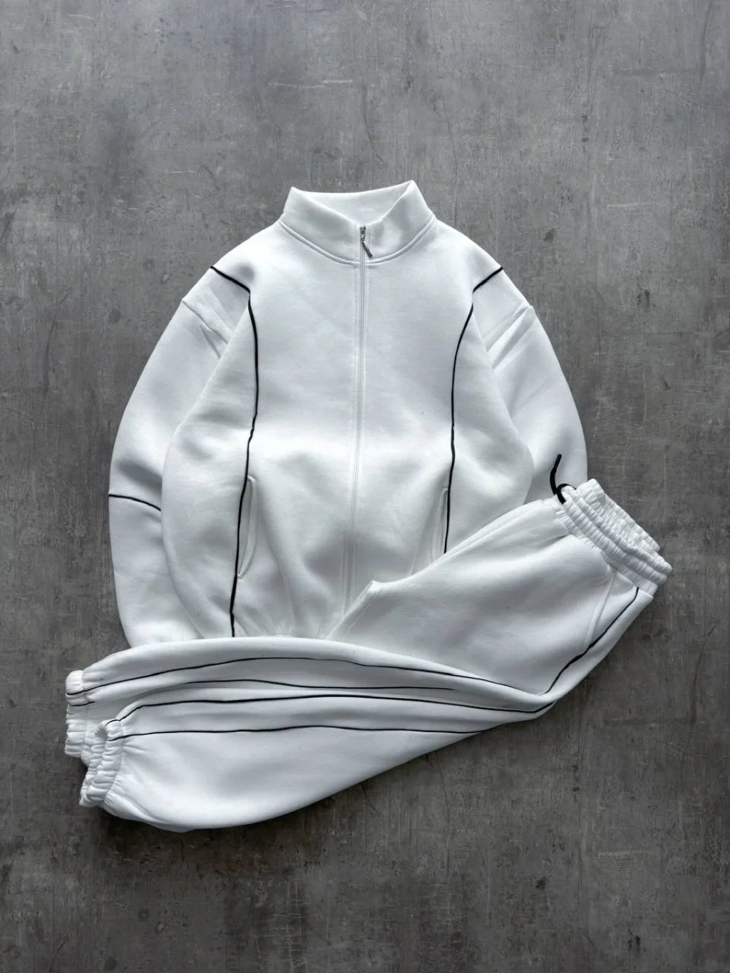 Biyeli Paça Lastik Şardonlu Eşofman Takımı-Beyaz