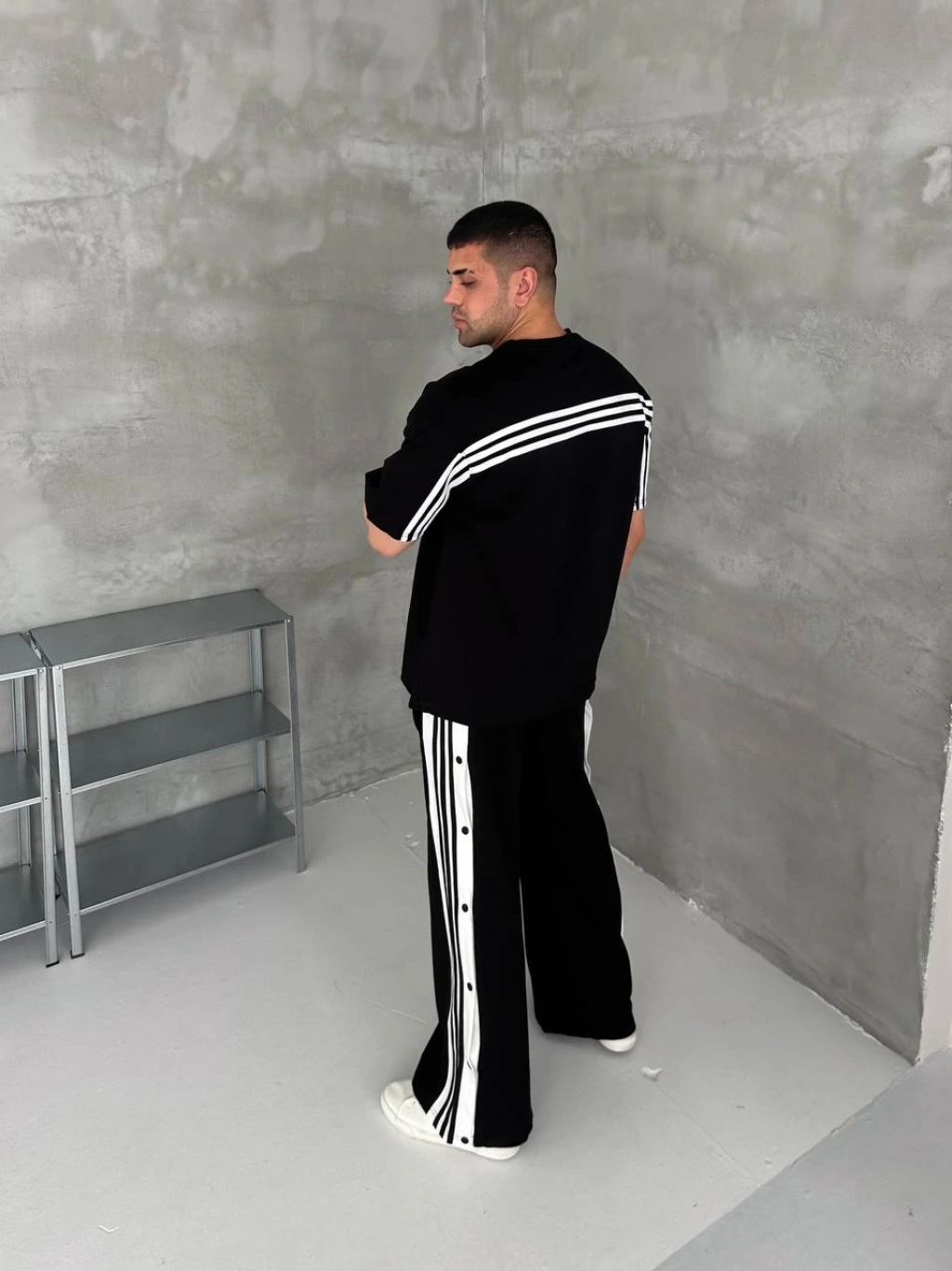 • Çıtçıtlı Unisex Oversize Eşofman Takımı-Siyah