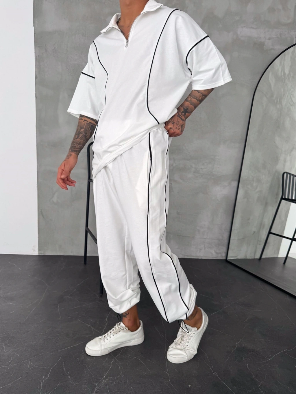 Fermuarlı Unisex Eşofman Takımı-Beyaz