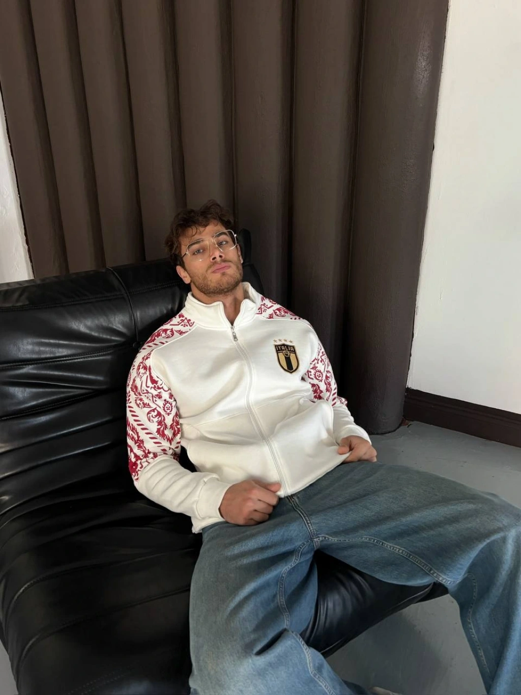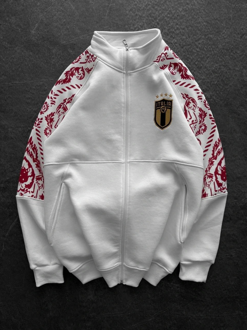 ITL Kol Desenli Unisex Şardonlu Hırka-Beyaz