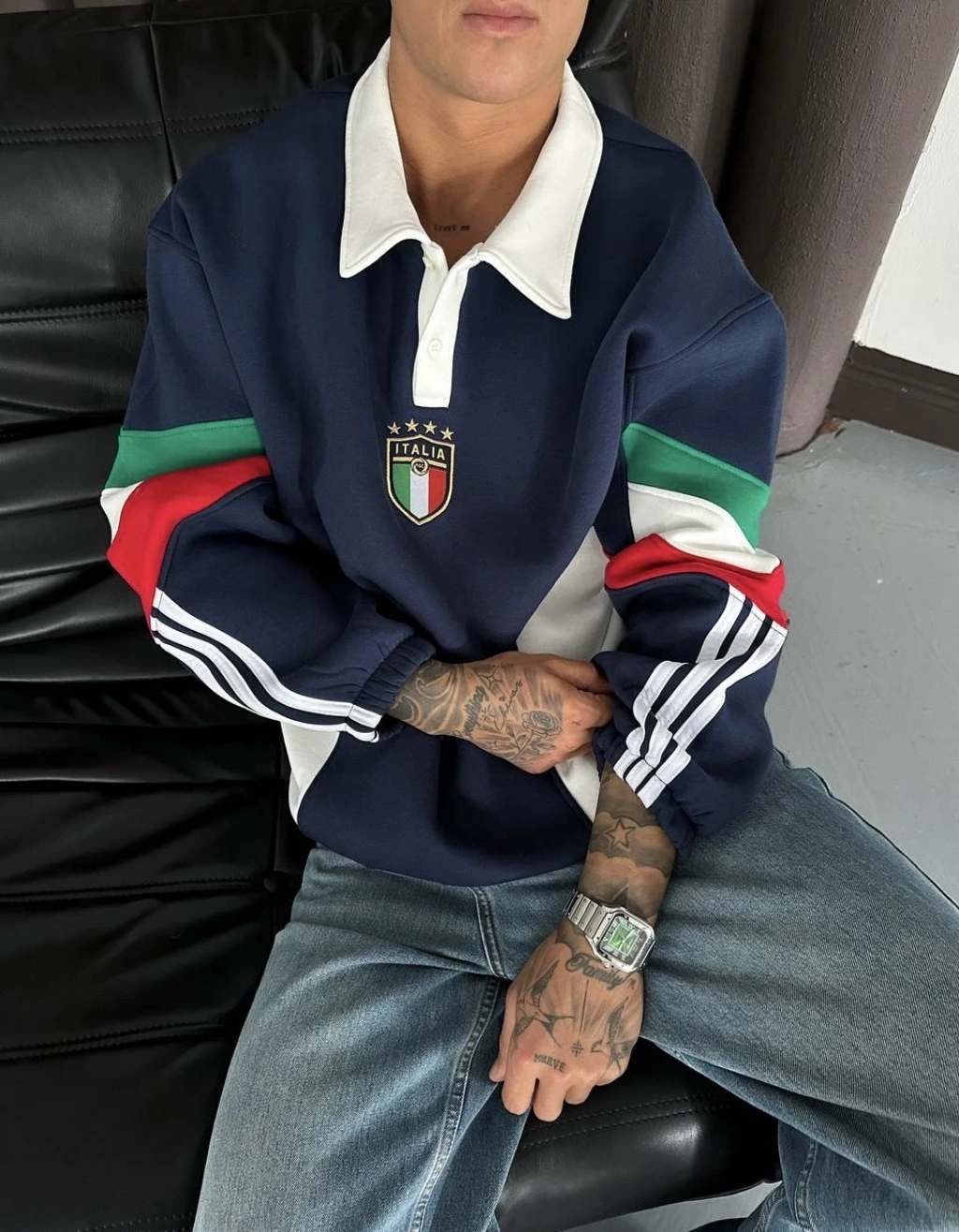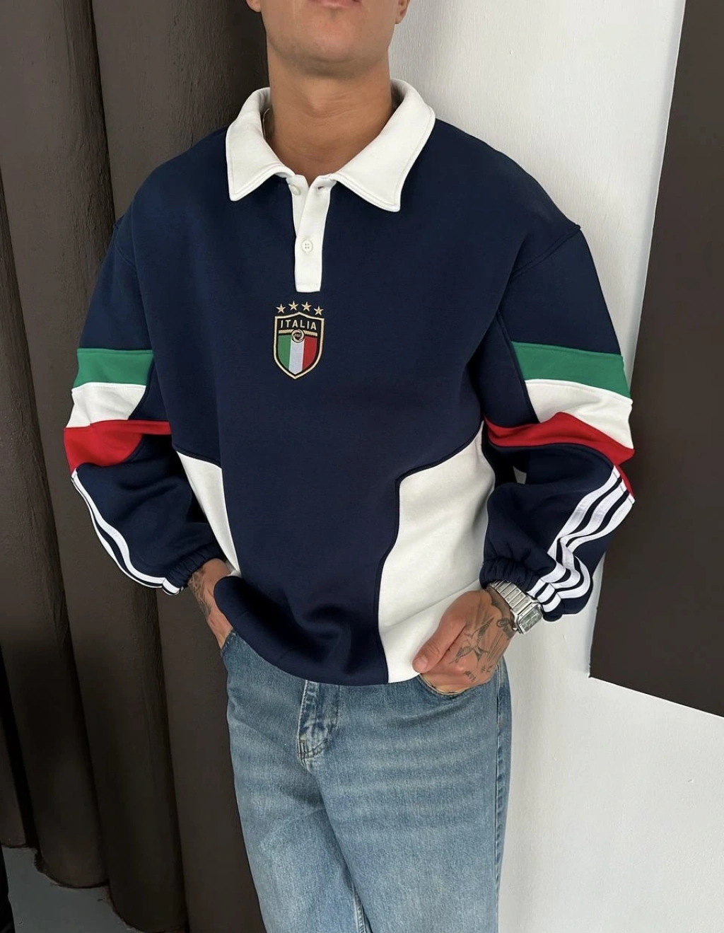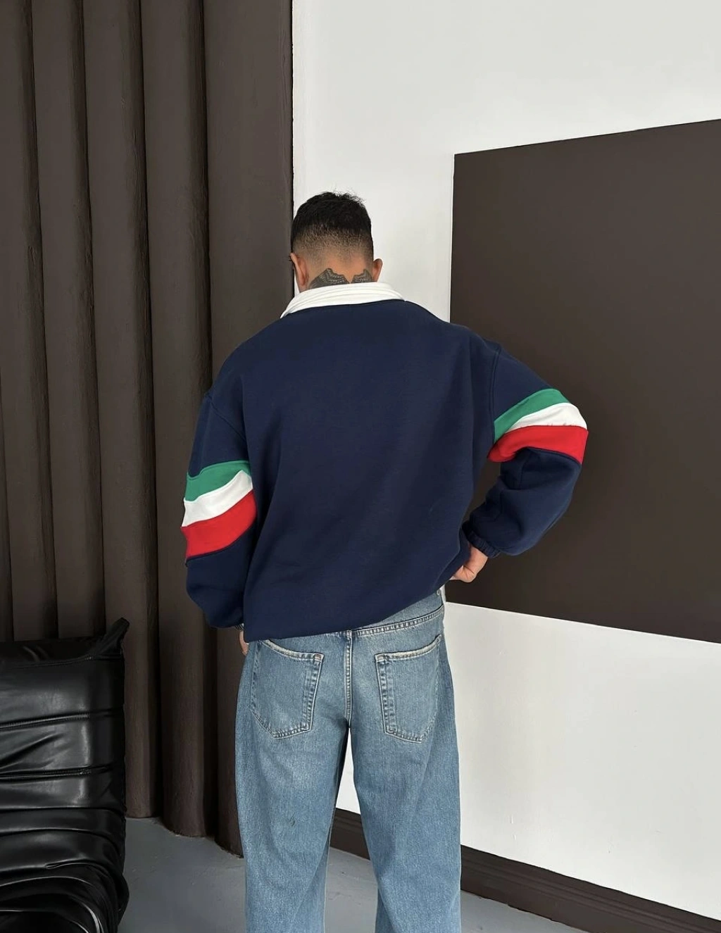 ITL Kol Parçalı Unisex Sweatshirt-Mavi