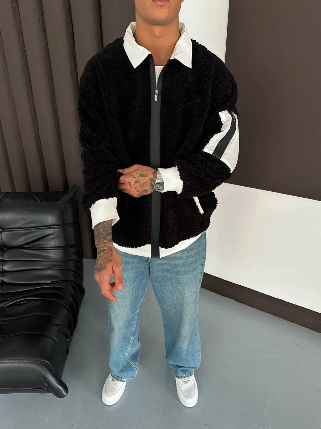 NK Unisex Peluş Ceket-Siyah