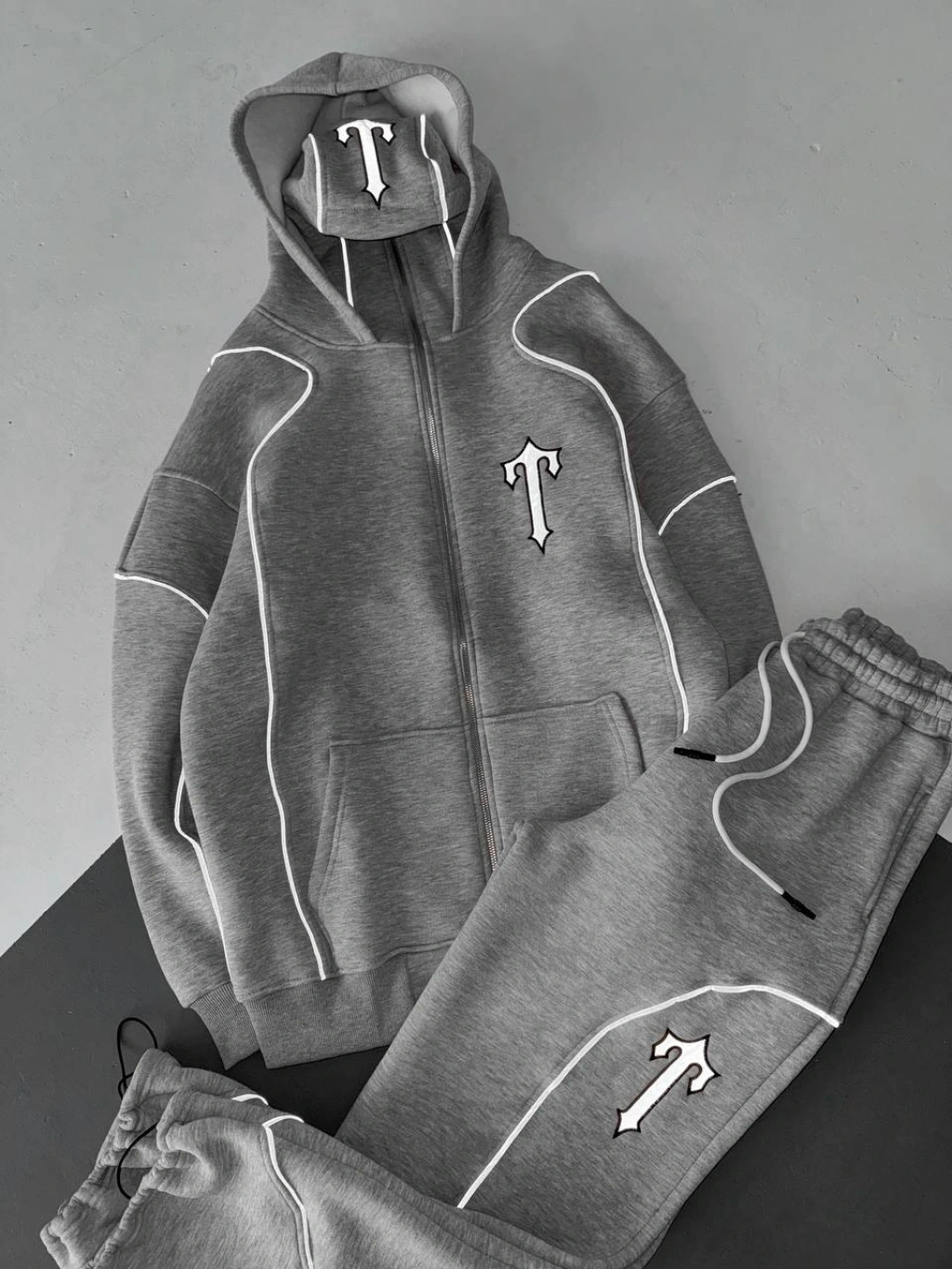 Reflektörlü Maskeli Unisex Eşofman Takımı-Gri