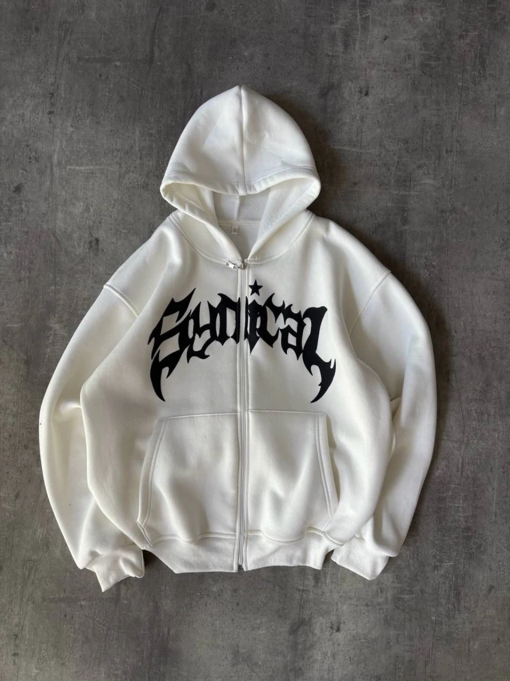 Çantalı Şardonlu Unisex Sweatshirt-Beyaz