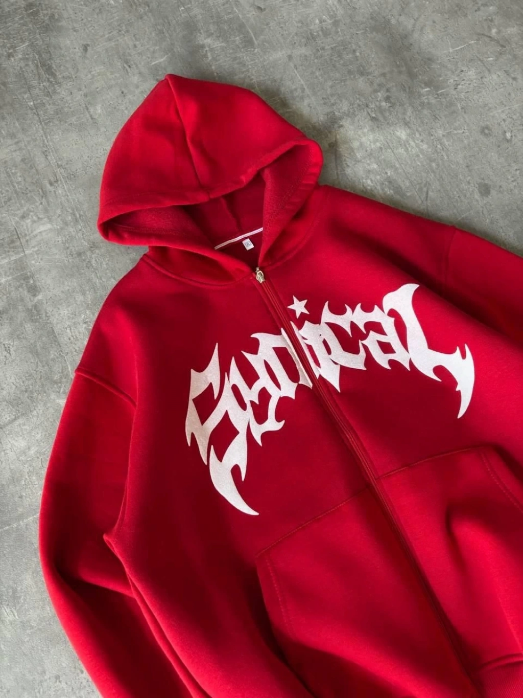 Taşlı Şardonlu Unisex Hırka-Kırmızı