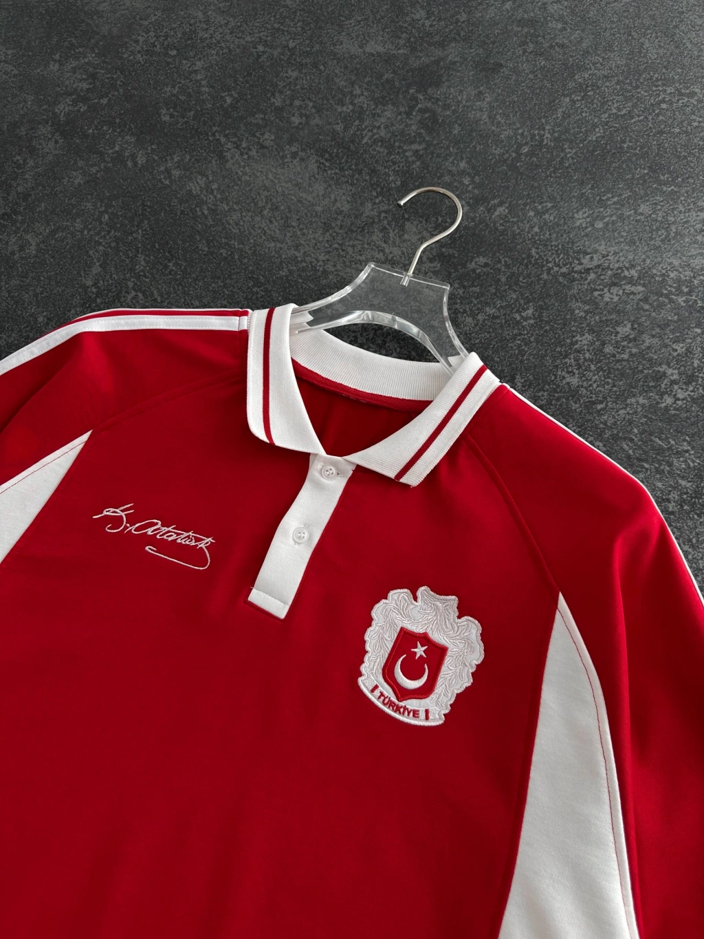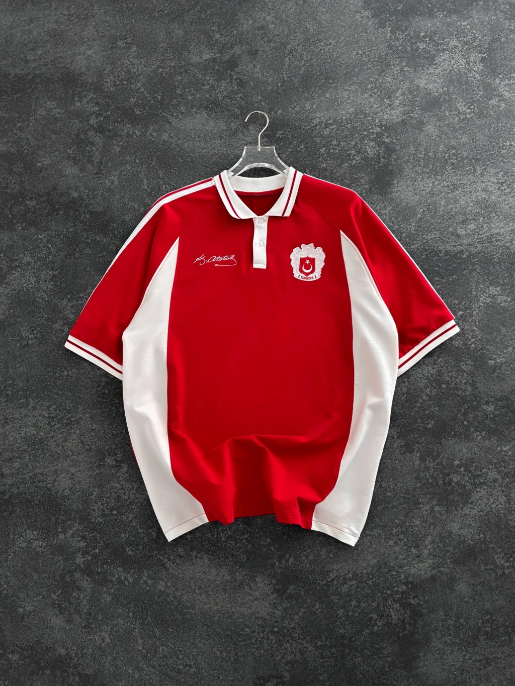 TR Nakışlı Oversize Unisex Tişört - Kırmızı
