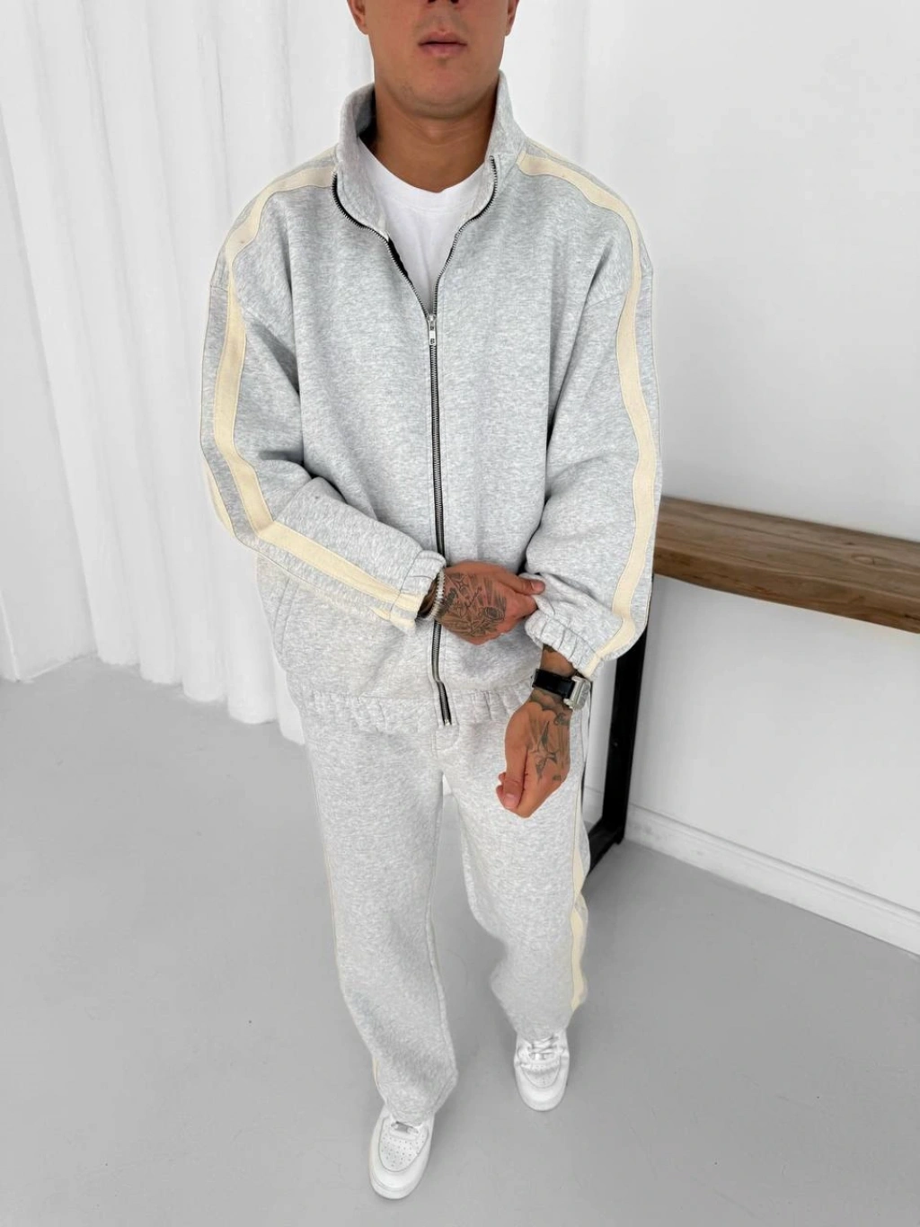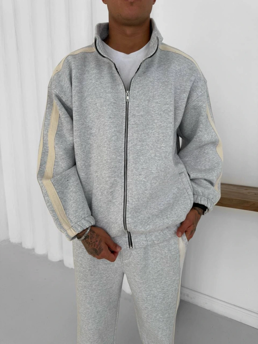 Yan Şeritll Şardonlu Unisex Eşofman Takımı-Gri